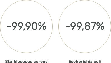 Test di laboratorio hanno dimostrato che i batteri si abbattono di oltre il 99%: lo staffilococco aureus è stato ridotto del 99,90% e l’escherichia coli del 99,87%.